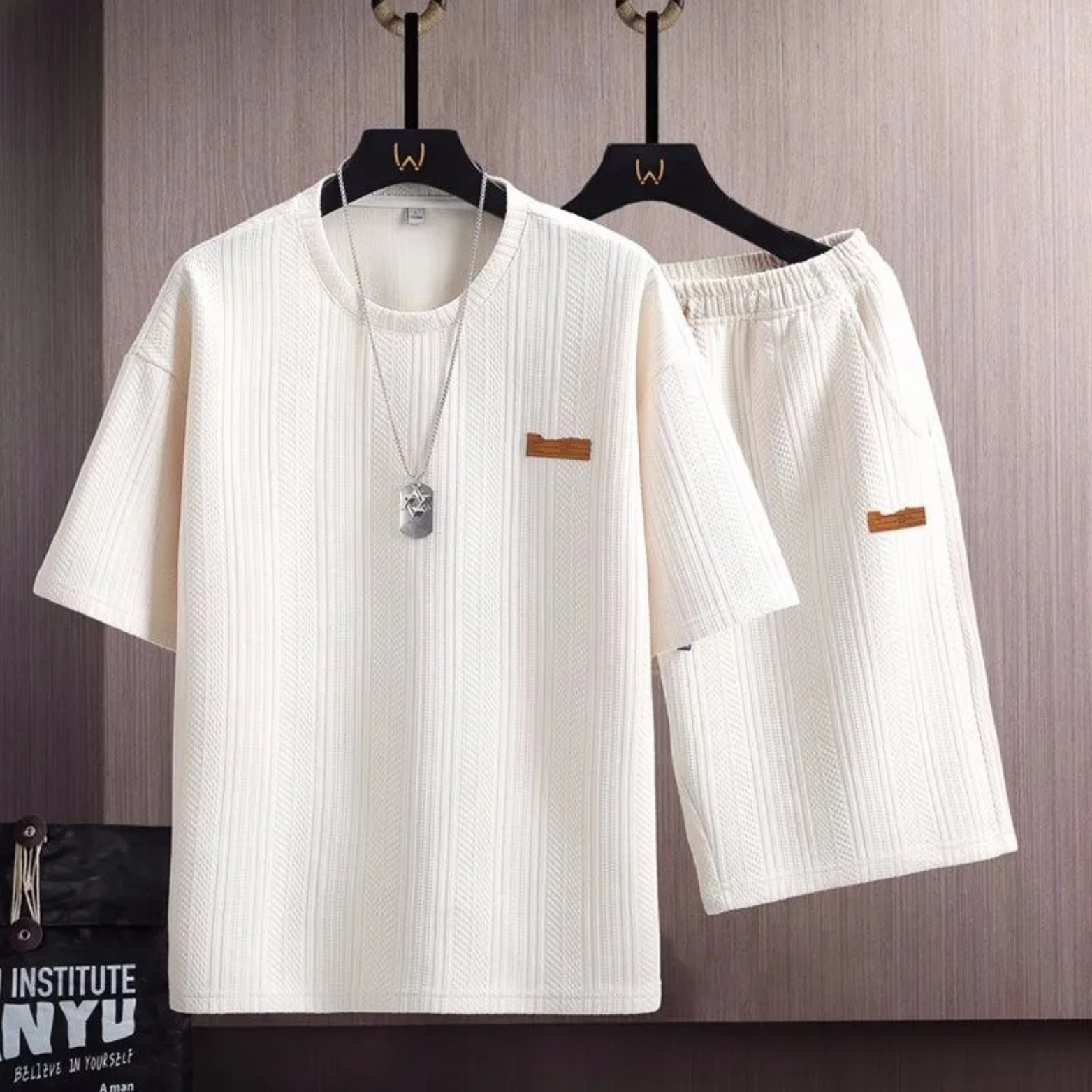 Crafted from a premium breathable textured knit, this two-piece set elevates your downtime with unmatched softness and tailored drape. From morning coffee runs to late-night wind-downs, it’s your go-to for staying sharp without trying.