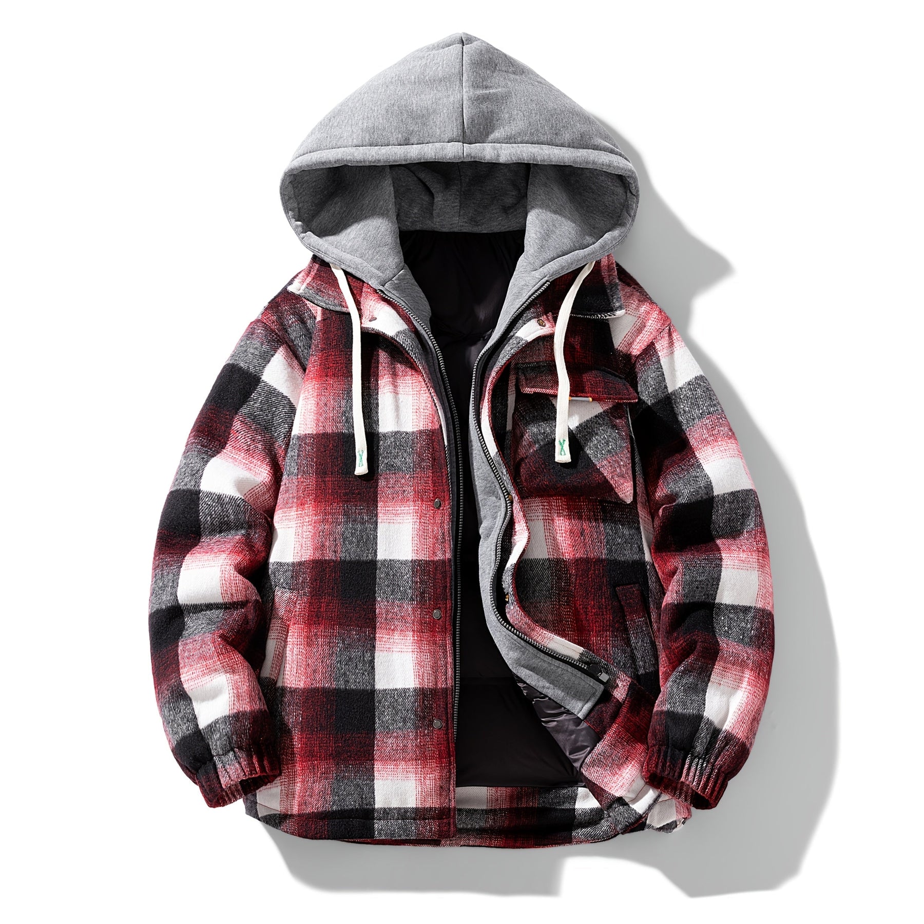 This innovative hybrid layer reimagines the classic flannel shirt-jacket by integrating a premium jersey hoodie directly into its construction. Crafted from heavyweight brushed cotton flannel in a timeless buffalo check pattern, the exterior shell features snap-front closure and dual chest pockets with flap details. Seamlessly built into the interior is a full jersey sweatshirt complete with drawstring hood and kangaroo pocket—creating two distinct looks in one essential piece. Wear it open over the hoodie for relaxed weekends, or button it up for a clean overshirt silhouette.
